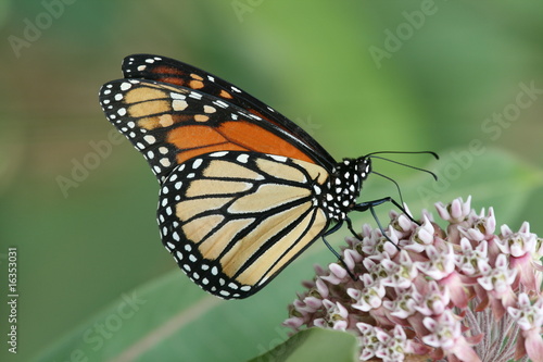 Naklejka premium Motyl monarcha na roślinie milkweed