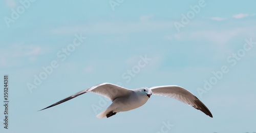 © E.T.Renan, Obraz premium Mouette qui vole dans le ciel de Majorque, les ailes ouvertes