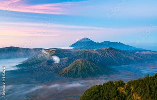 © calcassa, Obraz premium Mount Bromo during sunrise time with fog