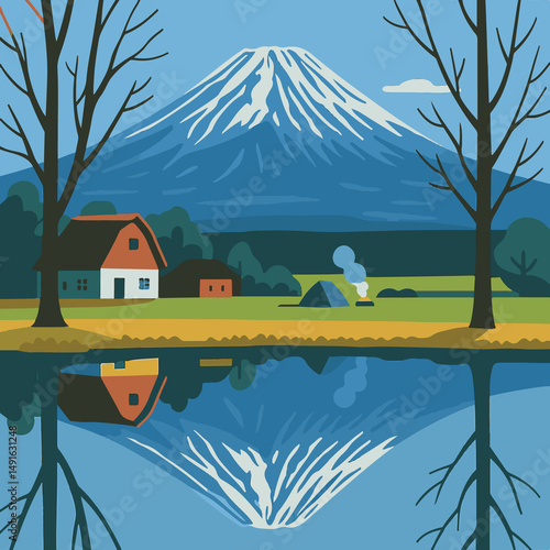 Naklejka premium Mount Fuji and Peaceful Campsite