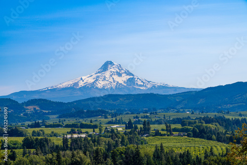 Naklejka premium Mount Hood, Oregon, viewed from Hood river valley, famous for its orchards, vineyards and scenic views