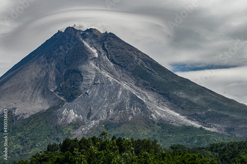 Fototapeta premium Mount Merapi is the most active volcano in Central Java and Yogyakarta, Indonesia Lenticular clouds