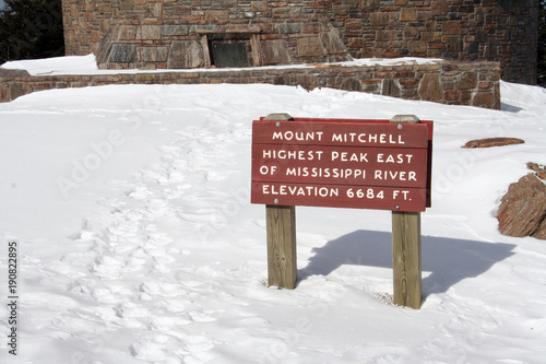 © Luke, Naklejka premium mount mitchell sign in north carolian mountains.