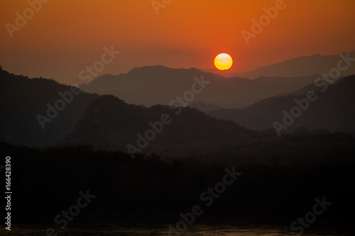 © sitriel, Fototapeta premium Mount Phou Si temple sunset