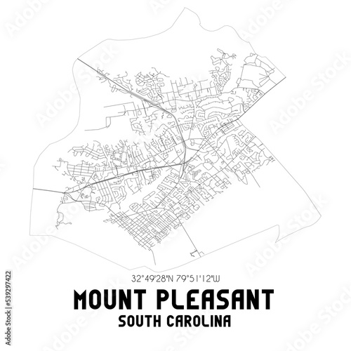 Fototapeta premium Mount Pleasant South Carolina. US street map with black and white lines.