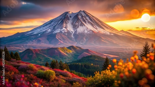 Fototapeta premium Mount St. Helens Eruption Bokeh, Washington State Volcanic Landscape,...