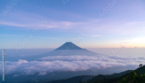 Fototapeta premium Mount Sumbing Peak Emerging from a Sea of Clouds at Sunrise.
