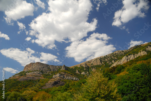 © Dmytro Korolov, Naklejka premium Mountain and clowds