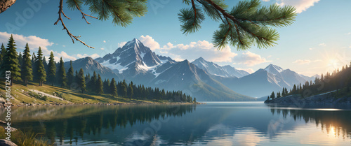 © Anoottotle, Fototapeta premium Mountain and lake landscape