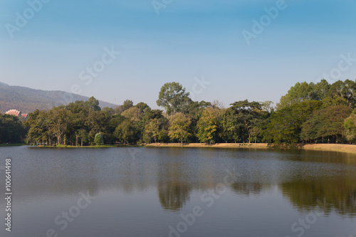 © 88studio, Fototapeta premium mountain and the pond in the park