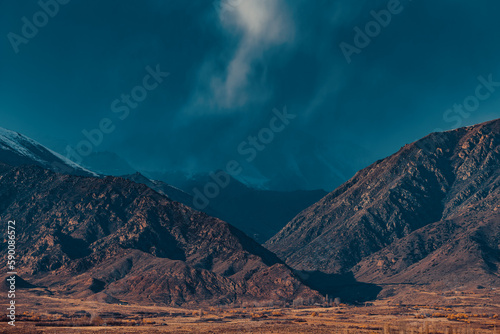 Fototapeta premium Mountain autumn landscape before the storm, Kyrgyzstan, dramatic colors