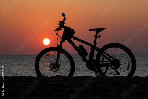 Obraz premium Mountain bike on the beach and sunset
