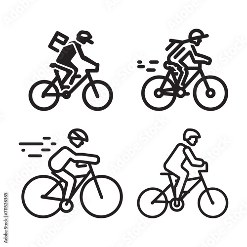 Obraz premium Mountain bike rider icon set, Mountain bike rider flat icon outline
