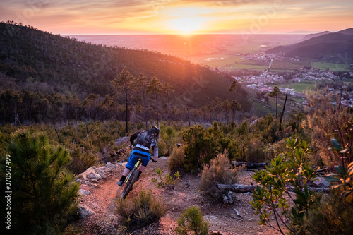 © Ian, Fototapeta premium Mountain biker at sunset in Tuscany
