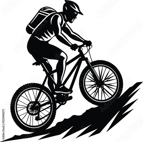 © ABIR, Fototapeta premium Mountain Biker Climbing Steep Hill