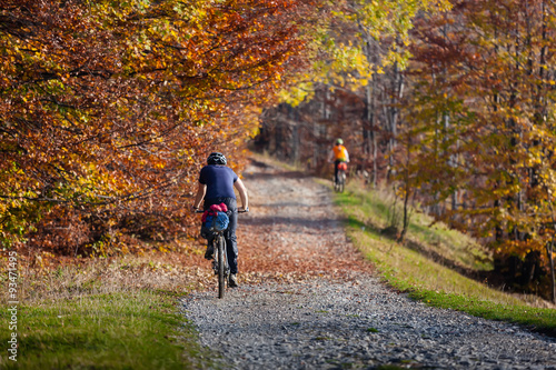 Obraz premium Mountain biker in autumn forest