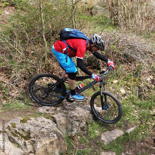 Obraz premium Mountain biker in difficult terrain