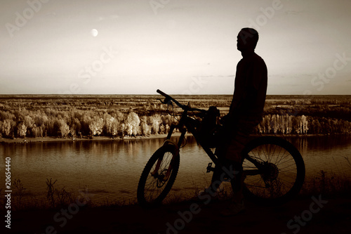© Artyom Belozyorov, Obraz premium mountain biker silhouette