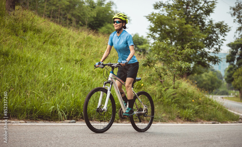 © lzf, Obraz premium Mountain biking on summer forest trail