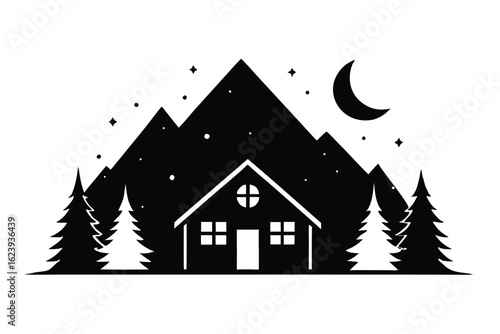 Fototapeta premium mountain-cabin-in-a-forest-with-moonlight-and-shad.eps