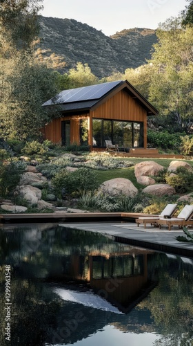© Diio, Fototapeta premium Mountain Cabin Poolside Retreat