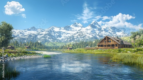 © Adisha, Naklejka premium Mountain Chalet by Serene River
