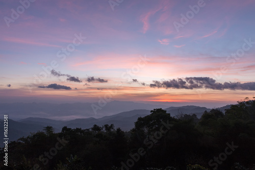 Obraz premium Mountain complex and colorful sky for background.