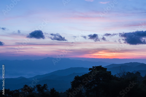 Obraz premium Mountain complex and colorful sky for background.