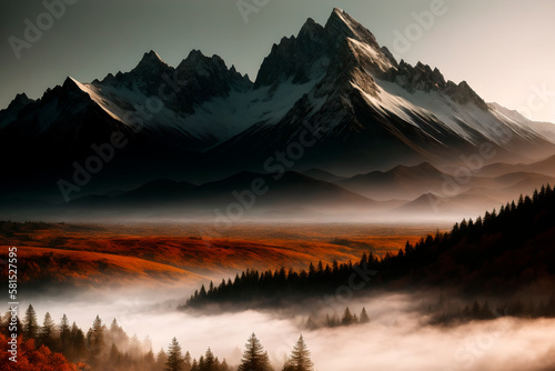 © Oleg_Yakovlev, Obraz premium mountain concept art illustrtion. Generative ai.