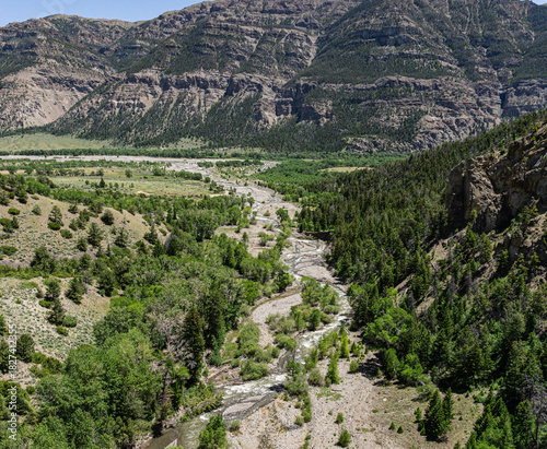 Fototapeta premium Mountain Creek EMpties in SHoshone River Wyoming