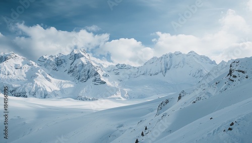 Fototapeta premium Mountain crest vantage point over snow-laden Alps in Austria, illustrating...