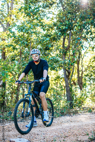 © Johnstocker, Obraz premium Mountain cyclists sitting on bicycles