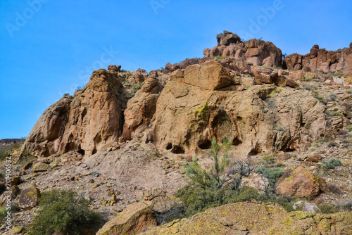 © Oleg Kovtun, Obraz premium Mountain erosion formations of red mountain sandstones, Desert landscape with cacti, Arizona