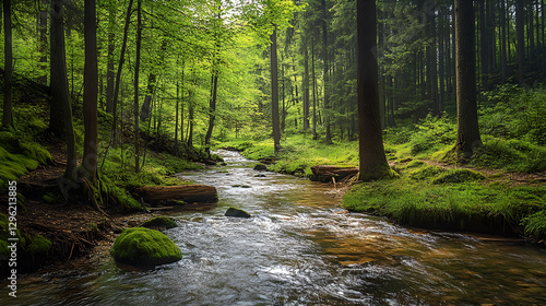 © 易声 梁, Fototapeta premium Mountain Forest and Lake View