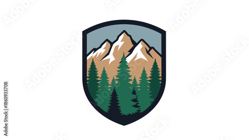 © yuki, Fototapeta premium Mountain Forest Emblem Badge Nature Landscape Design.