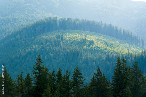 © Yury Kirillov, Obraz premium Mountain forest in mist