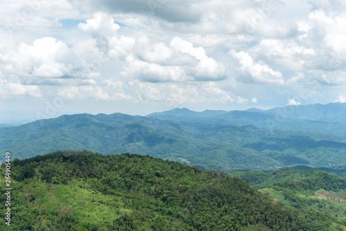 Fototapeta premium Mountain forest valley and cloud sky. Doi chang in Chiang Rai, Thailand.
