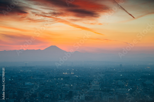 Fototapeta premium Mountain fuji and cityscape at sunset in Tokyo, Japan