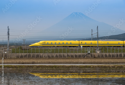 Obraz premium Mountain fuji and Doctor Yellow , Shinkansen the high-speed test trains