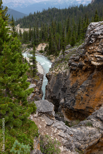 © Viktorus, Obraz premium Mountain Glacier Bow River Flows Along the Trail, Canadian Rockies, Banff, Alberta, Canada