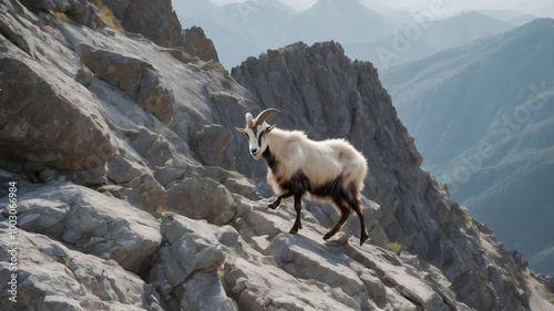 © TarikTalha, Naklejka premium Mountain goat in the wild . AI generated image, ai.