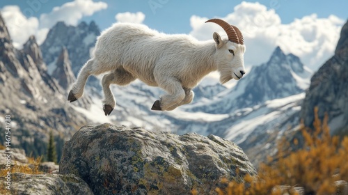 © nur, Obraz premium Mountain goat leaping across rocky terrain