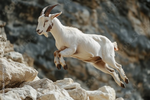 © Nature_Beauty, Fototapeta premium Mountain Goat Leaping Over Rocks