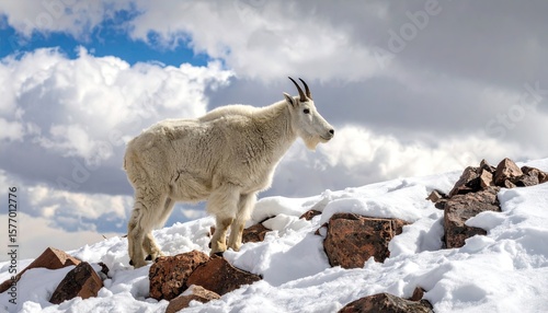 Fototapeta premium Mountain goat on snowy peak
