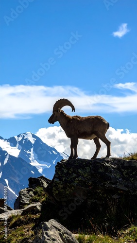 Naklejka premium Mountain goat silhouette against a vibrant blue sky
