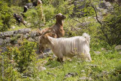 © Kira-monte, Obraz premium mountain goats in the mountains on a Sunny day