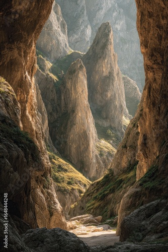 © Sunnia, Obraz premium Mountain gorge, sunlight through rock