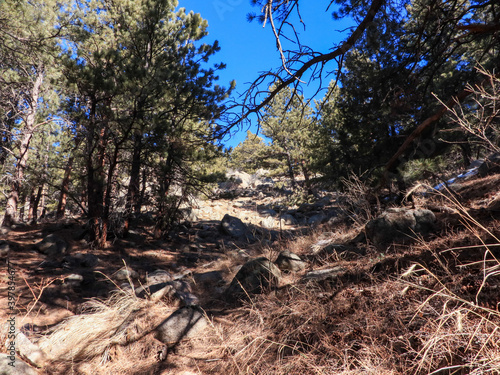 Obraz premium Mountain Hike In Evergreens Flatirons