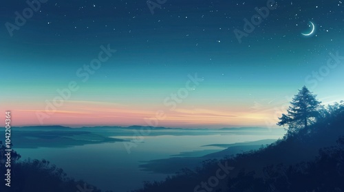 © Imsuniyah, Fototapeta premium Mountain Lake at Night