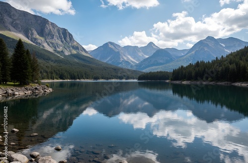 © 远健 谢, Naklejka premium mountain lake in the alps